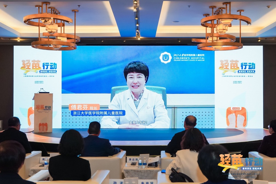 浙江大學(xué)醫(yī)學(xué)院附屬兒童醫(yī)院傅君芬院長在線上進行致辭,提到 “輕苗行動”兒童肥胖管理公益項目的使命和愿景,希望通過多維度的公益科普宣教活動,提升全社會對兒童肥胖的關(guān)注,助力系統(tǒng)化、規(guī)范化的中國兒童肥胖管理體系建設(shè),讓兒童肥胖的傷害最小化。
